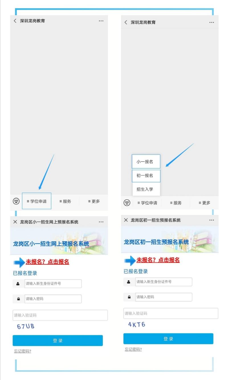 和以往一樣,家長(zhǎng)可以登錄龍崗政府在線網(wǎng)站的“龍崗區(qū)教育局基礎(chǔ)教育科”頁(yè)面(http://www.lg.gov.cn/bmzz/zs/)進(jìn)行學(xué)位申請(qǐng)報(bào)名,不過(guò)今年,家長(zhǎng)多了一個(gè)更加便捷的報(bào)名方式,通過(guò)關(guān)注“深圳龍崗教育” 微信公眾號(hào),在“學(xué)位申請(qǐng)”欄目中點(diǎn)擊“小初一報(bào)名”,憑適齡兒童、少年身份證號(hào)進(jìn)入,填寫學(xué)位申請(qǐng)信息,填報(bào)學(xué)校志愿。確認(rèn)信息無(wú)誤后直接保存,同時(shí)產(chǎn)生申請(qǐng)學(xué)位的流水號(hào),即完成網(wǎng)上預(yù)報(bào)名。