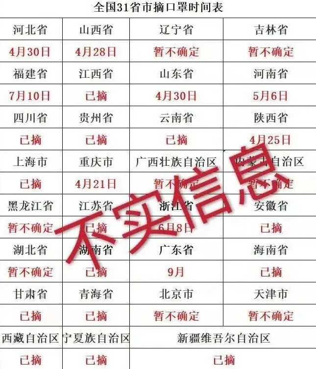 近日,一張網(wǎng)絡截圖在微信群流傳,截圖內(nèi)容中包含了全國各地摘口罩的時間。