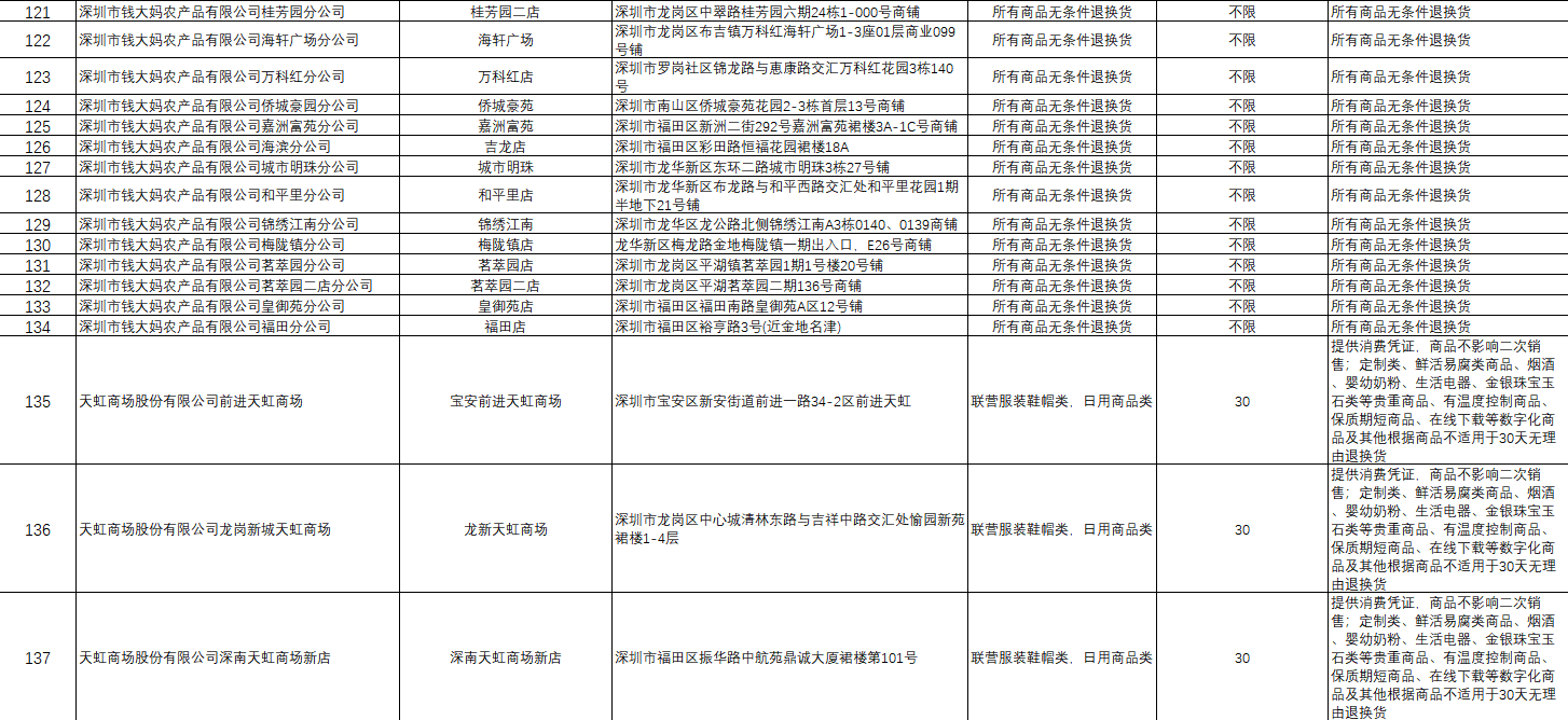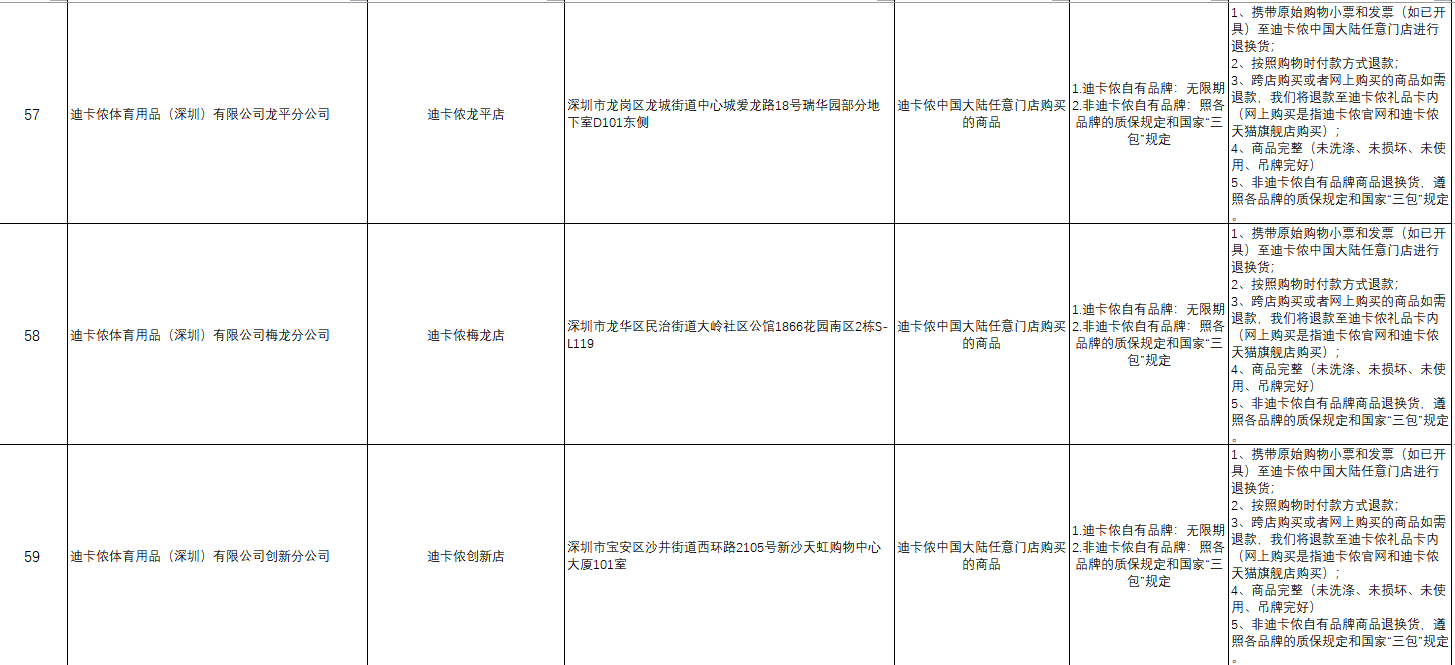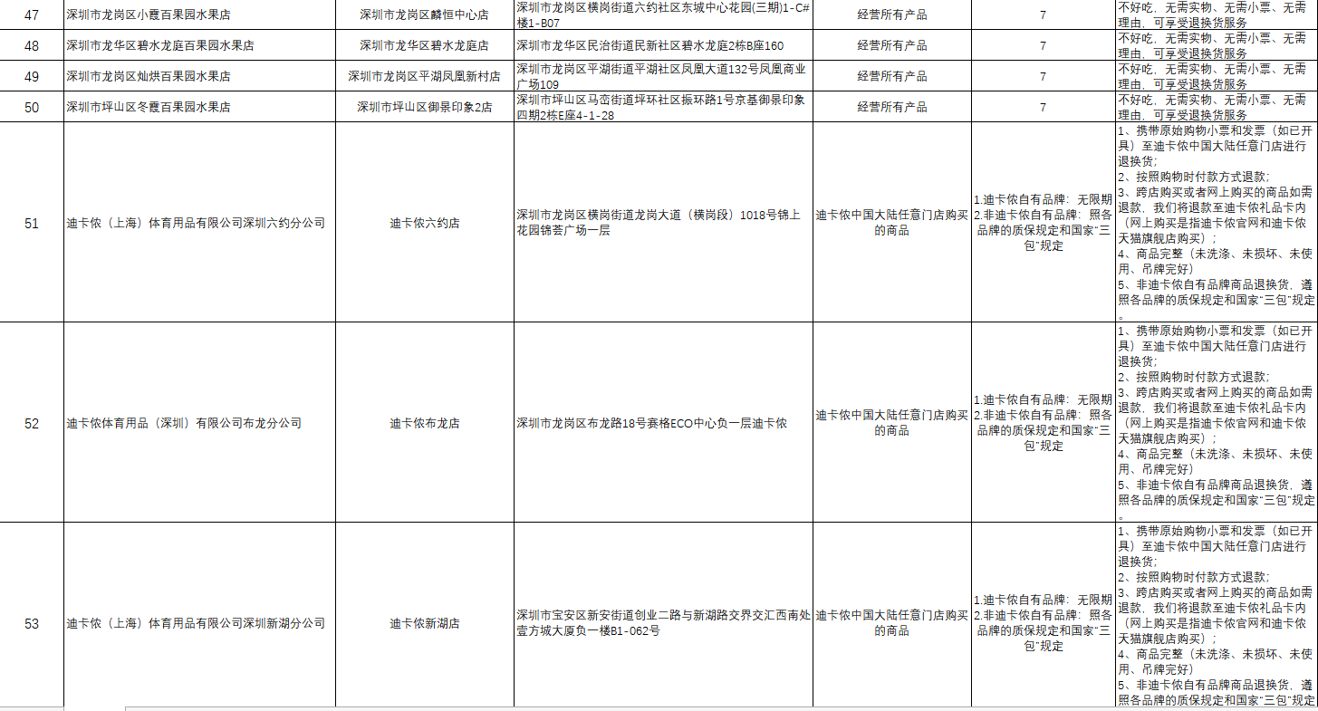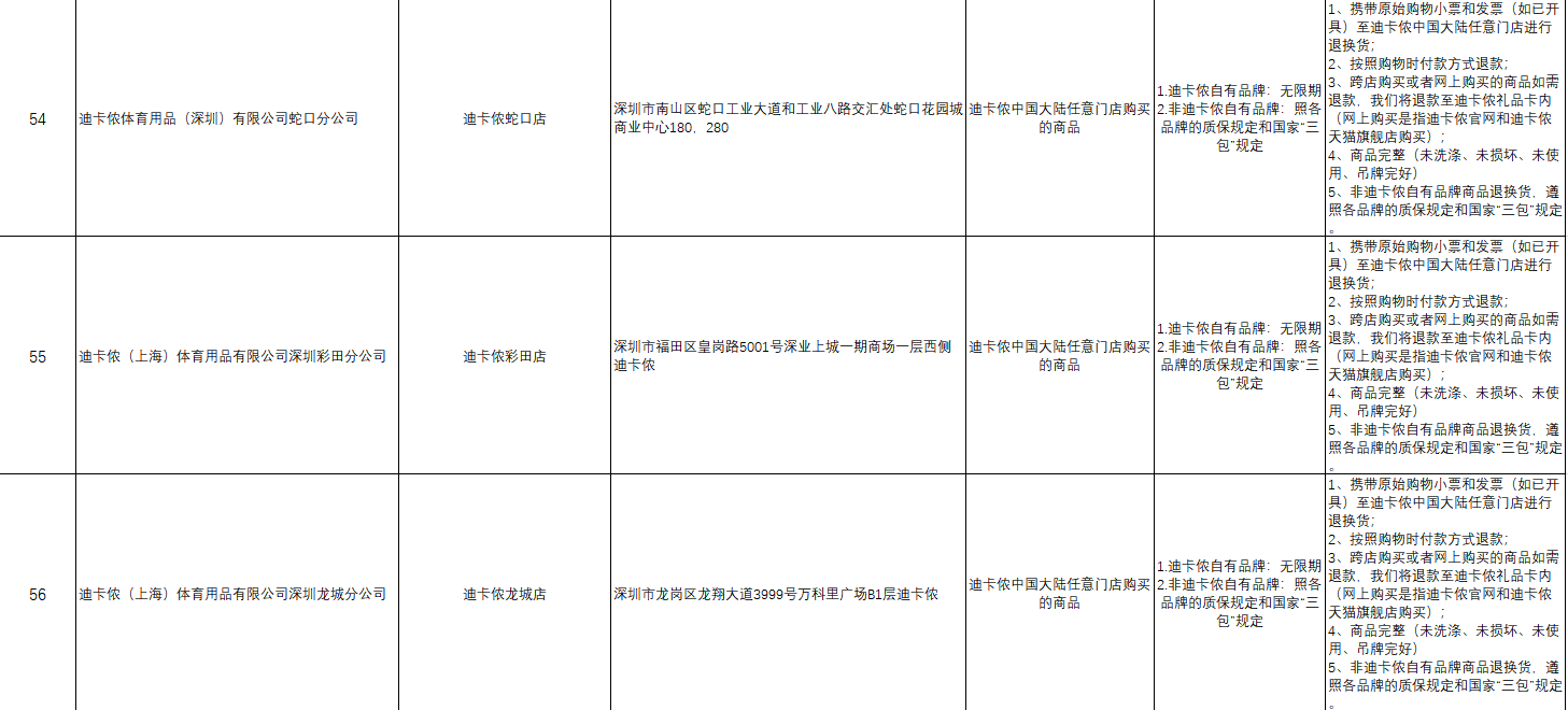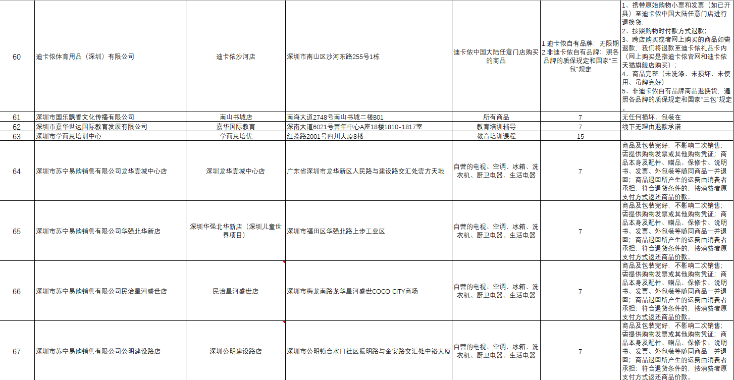 “首批參與的部分企業(yè)承諾遠高于活動基本要求,退貨期限不止是7天。”市消委會相關(guān)負責(zé)人舉例說,天虹商場聯(lián)營服裝鞋帽類和日用商品類承諾的退貨限期為30天,錢大媽和迪卡儂自有品牌承諾無退貨限期。