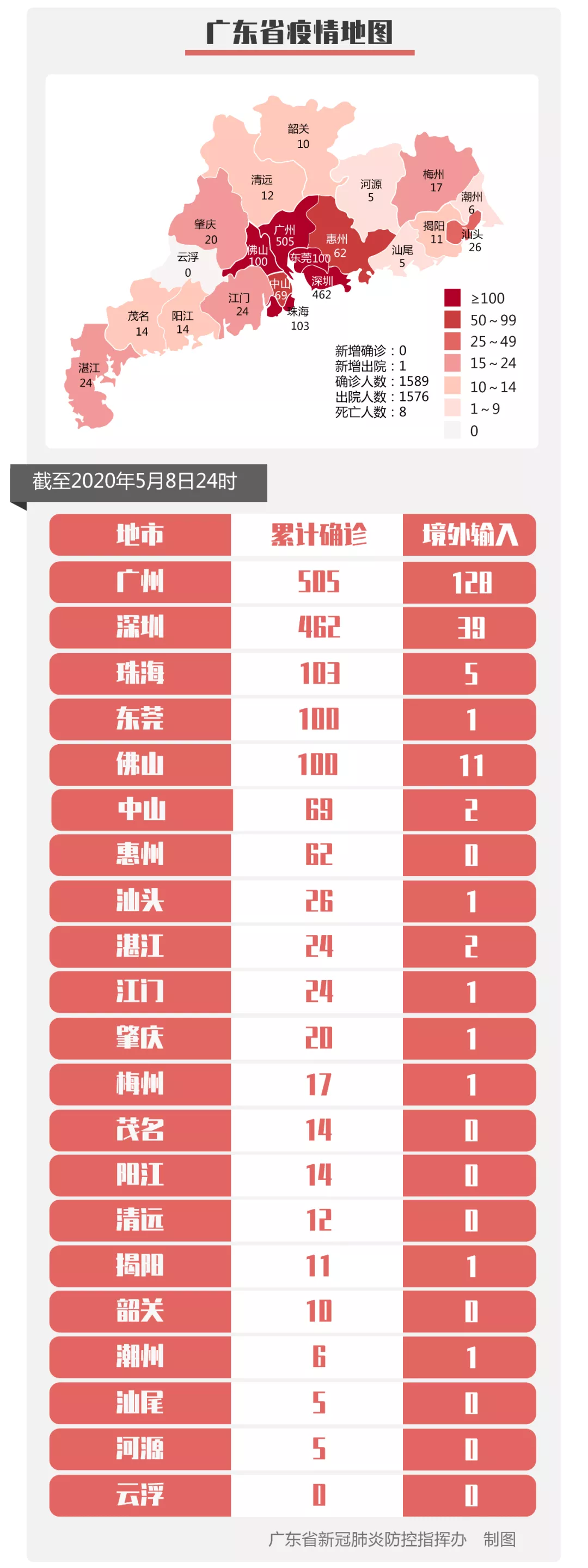 截至5月8日24時,深圳累計報告新冠肺炎病例462例。