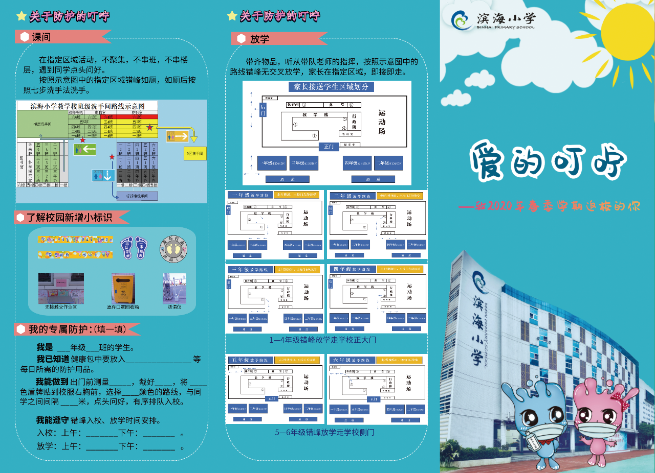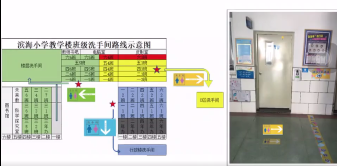 學(xué)校將教學(xué)區(qū)劃分為“綠黃藍”三區(qū),并精心設(shè)計了帶有濱海元素的“三色”入校通道、三色盾牌、三色貼紙等!