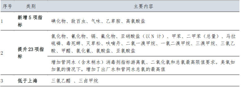 深圳市《生活飲用水水質(zhì)標準》與上海標準相比,增加了5項指標,提升了23項指標(含消毒劑);附錄增加了18項指標,考核方法上提升了出廠水和管網(wǎng)水合格率要求,增加了嗅味物質(zhì)檢測,重點關(guān)注龍頭水水質(zhì)。
