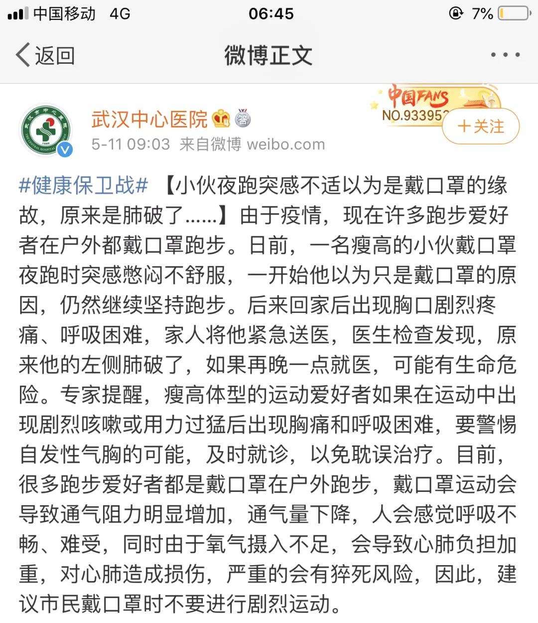 建議:戴口罩時(shí)不要進(jìn)行劇烈運(yùn)動(dòng)!