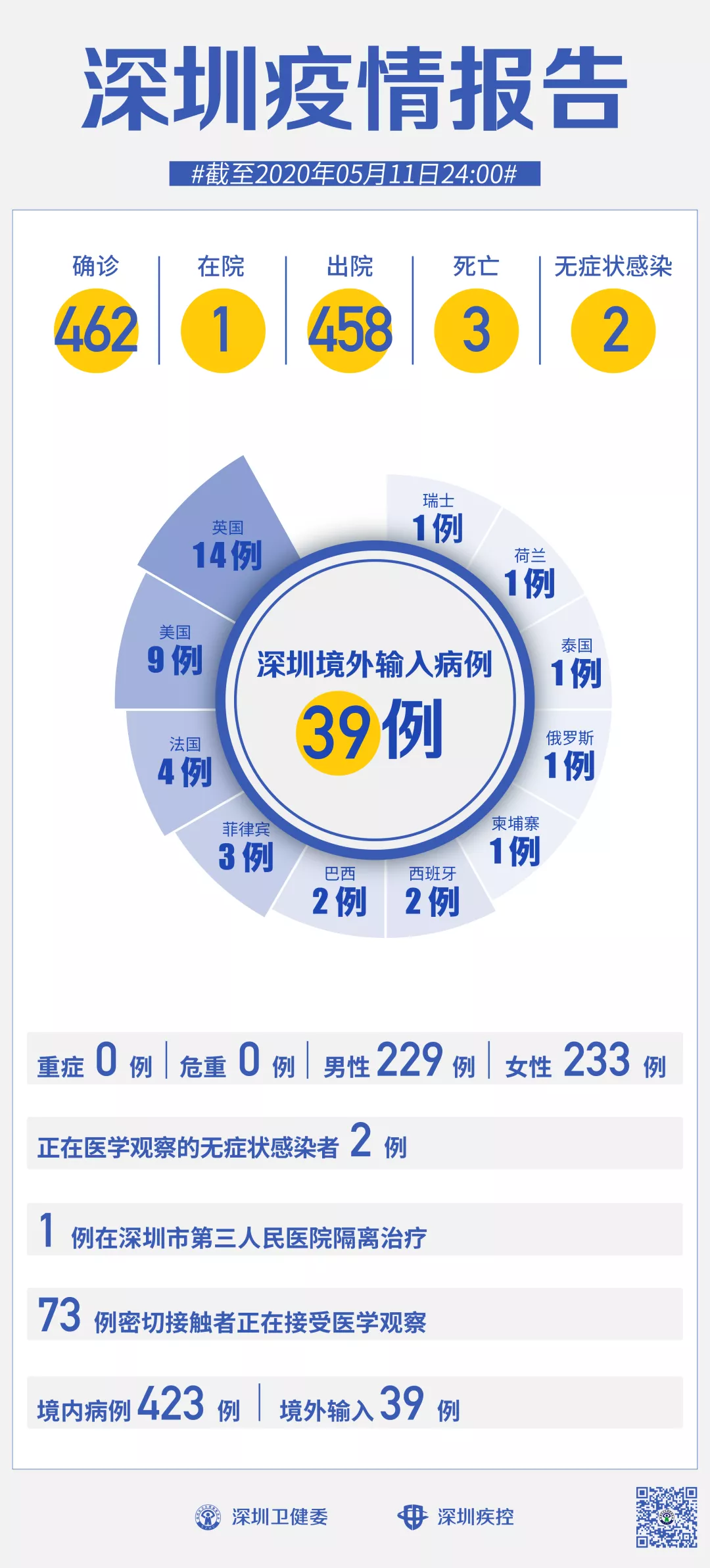 截至5月11日24時(shí),深圳累計(jì)報(bào)告新冠肺炎病例462例。