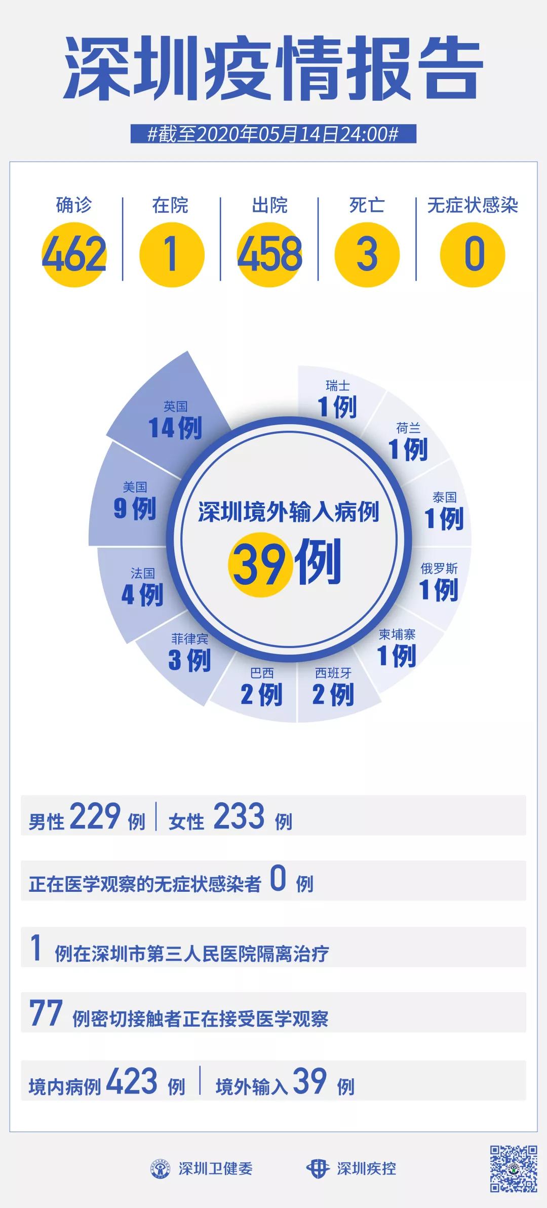 截至5月14日24時,深圳累計報告新冠肺炎病例462例。