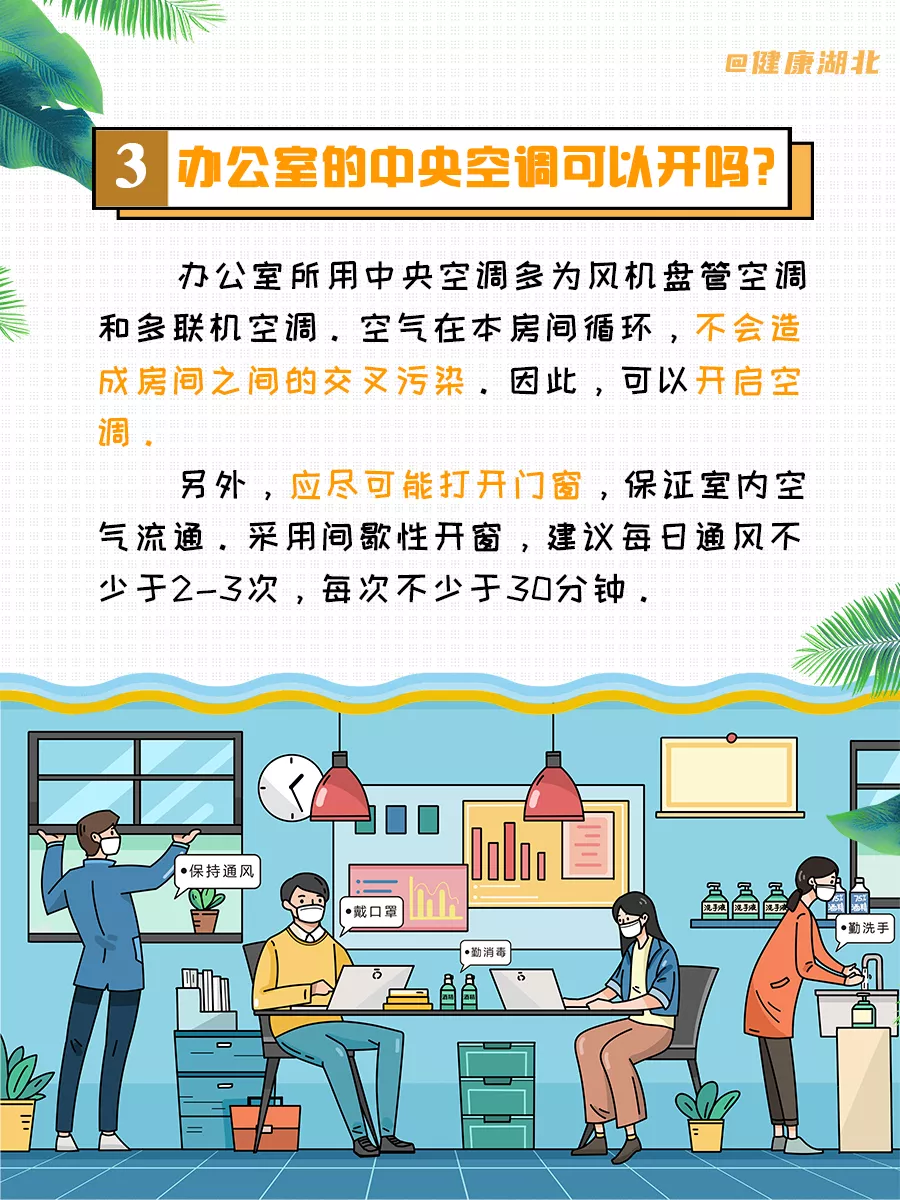 ③開空調(diào)時暫時不要關(guān)閉門窗,讓空氣流動一段時間以后,再關(guān)閉門窗。使用中央空調(diào)的時候應(yīng)該提高新風(fēng)率,并保持一定的空氣流通和自然通風(fēng)。