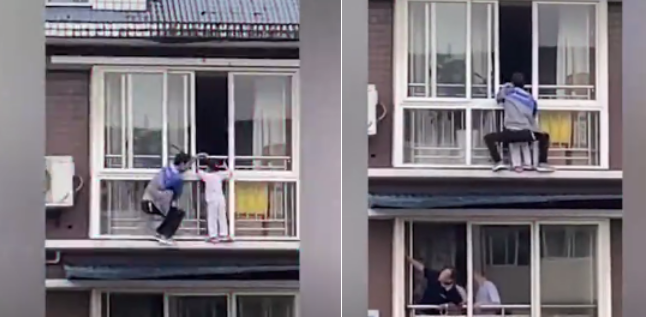 5月21日,四川富順縣一個(gè)5歲女童翻出6樓窗外,居民趕緊在樓下?lián)纹鸨蛔?,路過(guò)的小伙胡云川則從5樓陽(yáng)臺(tái)爬到6樓把孩子塞回屋內(nèi)。