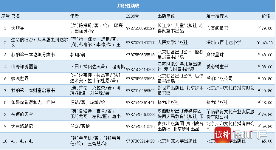 知識(shí)性讀物組(排名不分先后)
