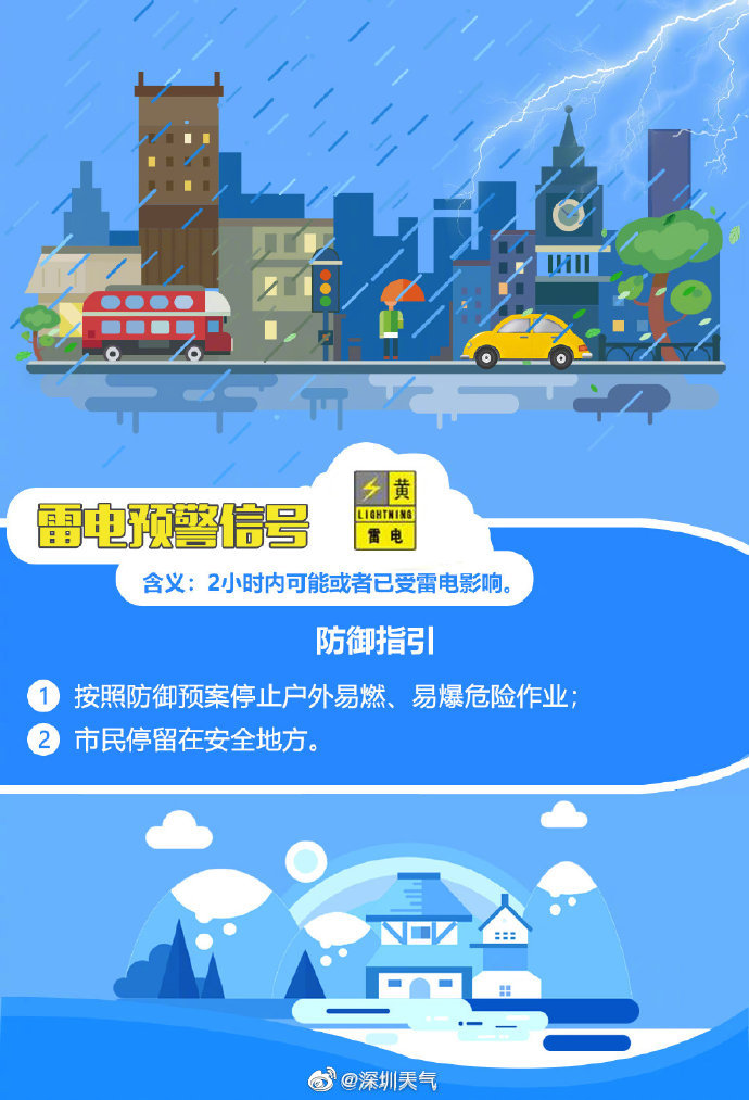 深圳市氣象臺于2020年06月05日11時(shí)15分在全市發(fā)布雷電預(yù)警,預(yù)計(jì)2小時(shí)內(nèi)全市將受雷電影響,市民停留在安全地方;按照防御預(yù)案停止戶外易燃易爆危險(xiǎn)作業(yè),并加強(qiáng)?;瘓鏊踩芾?。