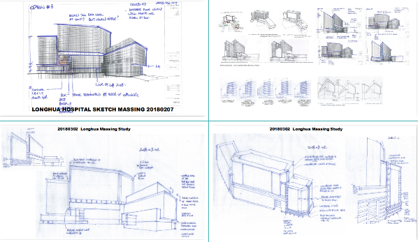 由于場地條件苛刻,設計難度高,項目設計團隊從設計初期便全程引用BIM軟件,對場地關系、空間尺度、可實施性等方面均進行強有力的把控,同時在立面關系、體塊穿插比例等方面,通過手繪草圖及實體模型等方式進行精心推敲,從多維度對設計進行把控。