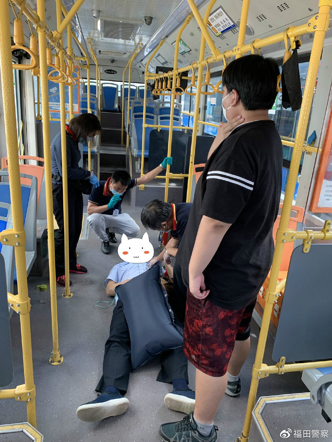 民警協(xié)助醫(yī)護人員救助公交車司機