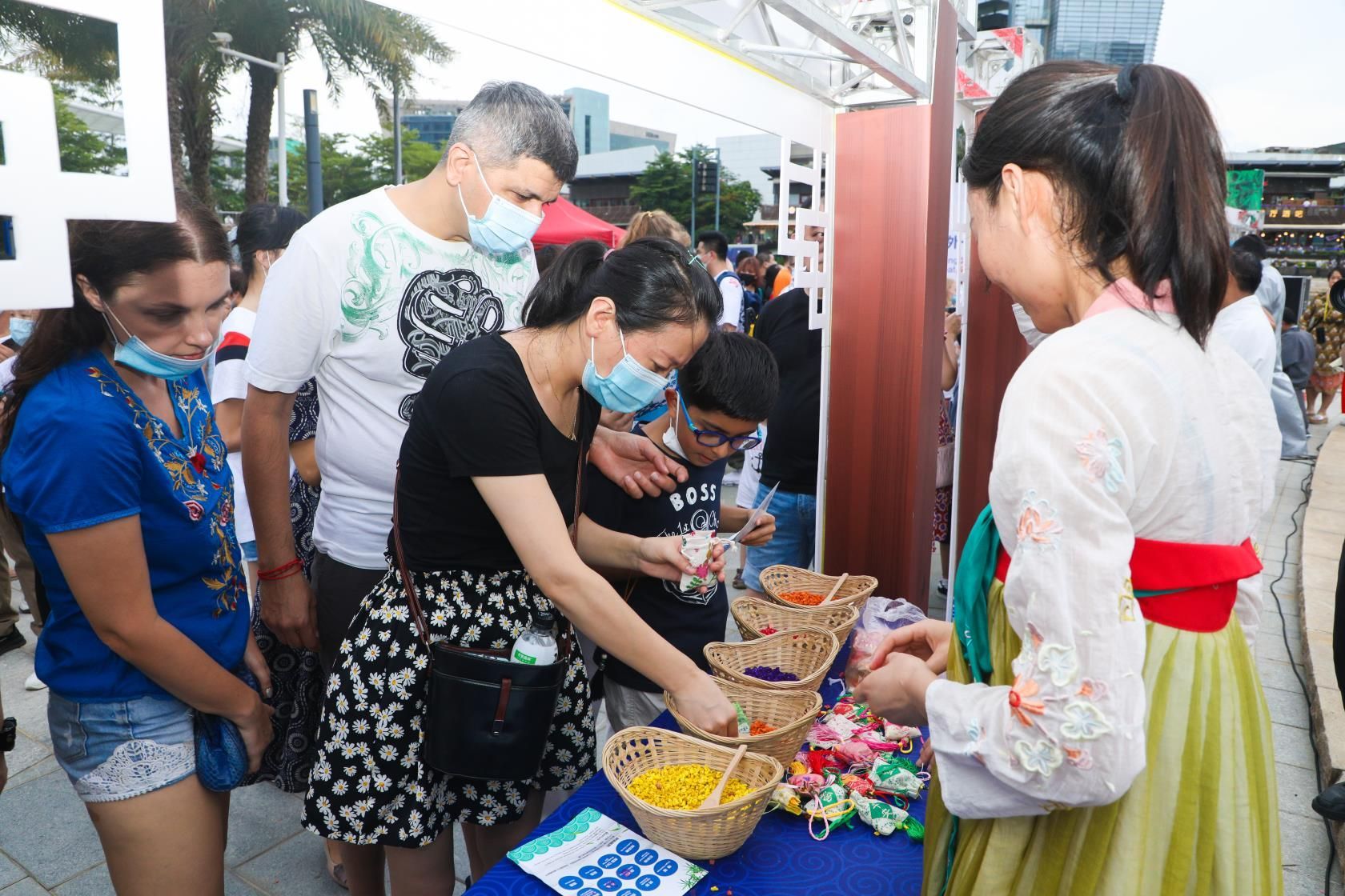 糖畫、捏面人、穿漢服……當晚的海上世界廣場熱鬧祥和,約300人次中外居民歡聚一起,互致美好祝福,在感受中國傳統(tǒng)文化當中共度端午佳節(jié)。