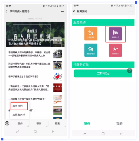 點(diǎn)擊“無(wú)障礙出行”圖標(biāo)進(jìn)入預(yù)約界面