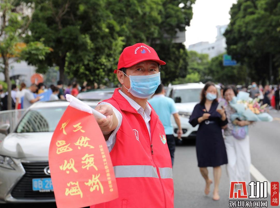 深建運(yùn)協(xié)義工正在保障考點(diǎn)外路況安全,通行順利。