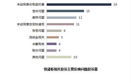 2020年上半年,深圳市消委會(huì)共收到93宗有關(guān)快遞柜的投訴,其中,深圳市豐巢科技有限公司(以下簡(jiǎn)稱“豐巢”)相關(guān)投訴76宗,占快遞柜總投訴量的81.72%。主要反映未經(jīng)同意收取超時(shí)費(fèi)問(wèn)題、丟件問(wèn)題、寄存問(wèn)題、未經(jīng)同意將快遞放到快遞柜等問(wèn)題。
