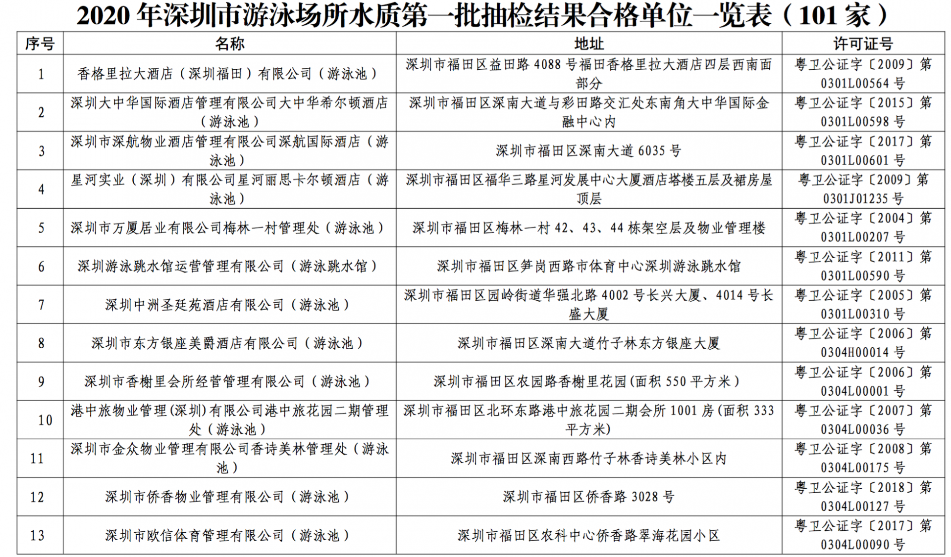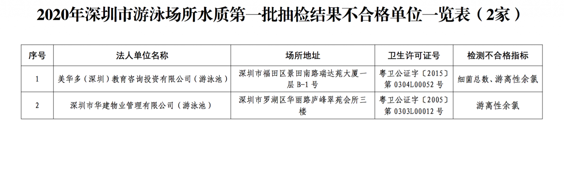 原標(biāo)題 游泳去?深圳第一批游泳場(chǎng)所水質(zhì)抽檢結(jié)果:這2家不合格