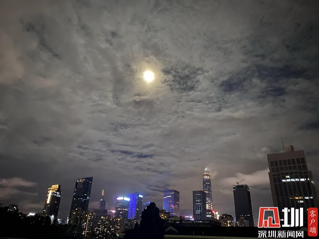 8月3日當(dāng)晚,深圳降雨暫歇,月亮也露出笑容。當(dāng)晚月亮升起時(shí)刻為19:06,不少深圳網(wǎng)友都拍到了圓月,并分享到社交平臺(tái)上。
