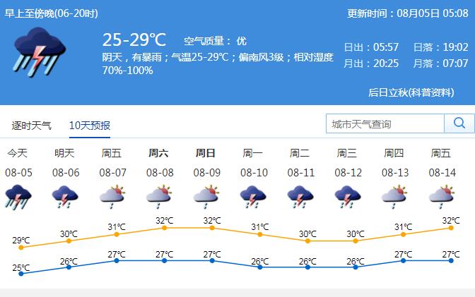 見圳客戶端·深圳新聞網(wǎng)2020年8月5日訊 今日我市陰天,有暴雨;氣溫25-29℃;偏南風(fēng)3級;相對濕度70%-100%。深圳市氣象臺于2020年8月5日5時15分在全市發(fā)布雷電預(yù)警,今天上午海上將不斷有降雨云團(tuán)生成,受其影響我市有零散雷暴;未來6小時累計(jì)雨量將達(dá)暴雨,深圳市氣象臺于2020年8月5日5時40分在全市發(fā)布暴雨黃色預(yù)警,全市進(jìn)入暴雨戒備狀態(tài),需注意防范。市民停留在安全地方;按照防御預(yù)案停止戶外易燃易爆危險作業(yè),并加強(qiáng)?;瘓鏊踩芾怼?/span>