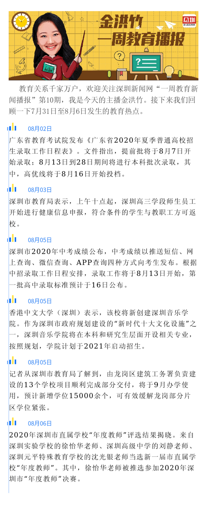 一周教育播報(bào)|第10期:深圳公布中考成績?“年度教師”評(píng)選揭曉