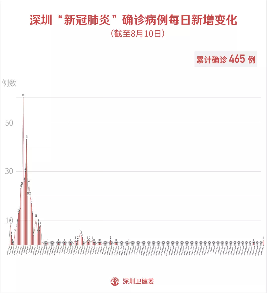 截至8月10日24時(shí),深圳市累計(jì)報(bào)告新冠肺炎確診病例465例。目前在院3例。