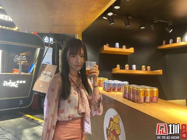 龍珠燈泡照亮夜空,震耳的音樂,橡皮桶木紋設(shè)計風(fēng)格的啤酒巴士和酒桌吧臺……直播第一站來到正在萬象城舉行的活動“日落酒場”現(xiàn)場。9月4日至10月4日每周五至周日晚,萬象城把啤酒巴士“開”進(jìn)下沉廣場。逛街累了的市民,在汩汩噴泉旁小憩,讓耳朵沉浸在樂隊(duì)帶來的聽覺盛宴中,從清新民謠到激情搖滾,再來一杯飄著酒花香氣的精釀啤酒,仿佛置身在樸實(shí)復(fù)古的高街酒場?!奥牭揭魳仿曈悬c(diǎn)大,好奇有什么活動,”住在附近的市民屈先生,循著音樂聲來到現(xiàn)場,還免費(fèi)領(lǐng)取了一杯啤酒品嘗,覺得很開心現(xiàn)場氣氛很熱鬧。