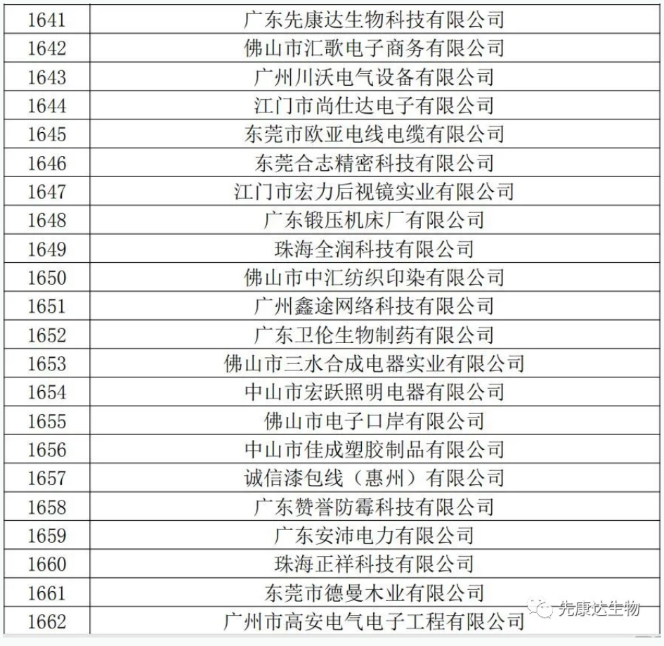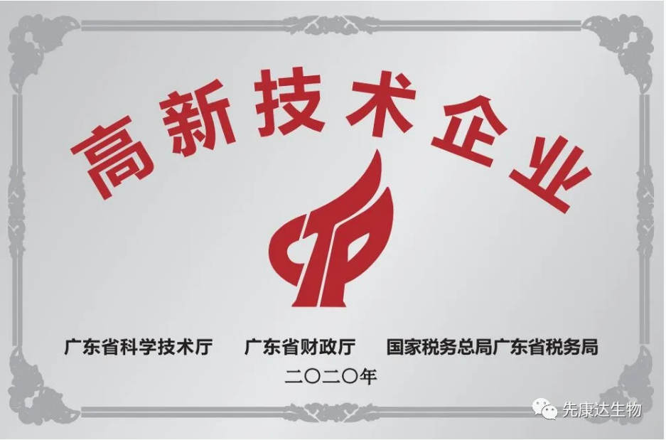 近日,廣東省科技廳公布廣東省2020年度第一批國家高新技術(shù)企業(yè)名單,廣東先康達(dá)生物科技有限公司赫然名列其中,這標(biāo)志著先康達(dá)生物邁上一個更大的臺階。