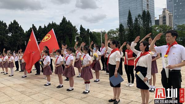 最后,全體參與人員在羅湖區(qū)東湖街道翠鵬社區(qū)黨委副書記甘麗麗及東曉小學(xué)少先隊(duì)大隊(duì)長的帶領(lǐng)下重溫入黨、入隊(duì)誓詞,堅(jiān)定的誓言響徹每一個(gè)角落。