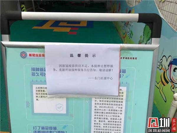 見(jiàn)圳客戶端·深圳新聞網(wǎng)4月7日訊(記者 彭桂紅 劉晨)“因新冠疫苗供應(yīng)不足,本接種點(diǎn)暫停服務(wù),重新開(kāi)放接種服務(wù)另行告知。敬請(qǐng)諒解!——東門(mén)社康中心?!?月6日,記者在羅湖區(qū)東門(mén)社康中心看到,該社康貼出了疫苗暫時(shí)供應(yīng)不足的告知。記者隨后走訪了其他幾個(gè)接種點(diǎn),一些社康也紛紛貼出了類(lèi)似溫馨提示。記者了解到,除羅湖外,其他區(qū)的接種點(diǎn)也出現(xiàn)了類(lèi)似“缺苗”現(xiàn)象。對(duì)此,記者采訪了羅湖區(qū)衛(wèi)健局,相關(guān)負(fù)責(zé)人表示,這段時(shí)間轄區(qū)新冠病毒疫苗接種率大幅提升,目前缺苗只是暫時(shí)性的,正在加強(qiáng)調(diào)配,隨時(shí)可能到苗,請(qǐng)大家耐心等待,同時(shí)留意相關(guān)提示。