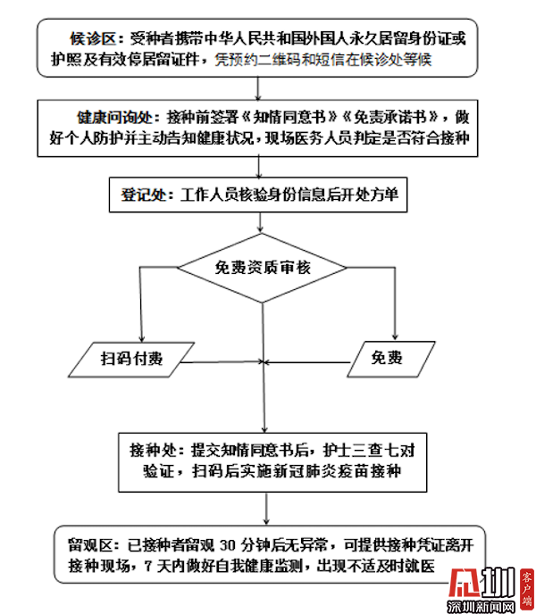 按照“知情同意、自愿自費(fèi)、便利接種、風(fēng)險(xiǎn)自擔(dān)”原則,持有內(nèi)地公安部門制發(fā)的港澳居民居住證或內(nèi)地醫(yī)保參保憑證的港澳人士、在省內(nèi)各類學(xué)校工作和學(xué)習(xí)的港澳籍師生以及參加廣東省社會(huì)保障醫(yī)療保險(xiǎn)的外籍人士,均可免費(fèi)接種新冠疫苗;不符合以上免費(fèi)接種條件的港澳同胞、外籍人士自愿參與疫苗接種,將按照100元/劑次收取費(fèi)用。目前,深圳使用的是國產(chǎn)新冠病毒滅活疫苗,全程共需接種兩劑。