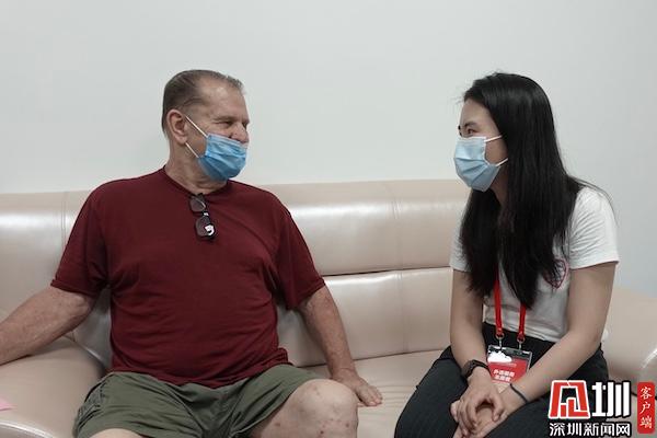 外籍人士Miller先生在妻子江女士的陪同下來到了羅湖醫(yī)院接種新冠疫苗。江女士說,Miller很喜歡中國,也熱衷于中國美食,她和丈夫每年冬天都會(huì)從美國來到深圳。今年6月份,江女士計(jì)劃和Miller乘坐飛機(jī)回到美國,由于返回美國途中需要中轉(zhuǎn)多次航班,Miller認(rèn)為,接種新冠疫苗能夠讓自己的健康多一份保障,所以預(yù)約了新冠疫苗接種。對于這次的接種體驗(yàn),Miller贊不絕口:“我感覺非常棒!”