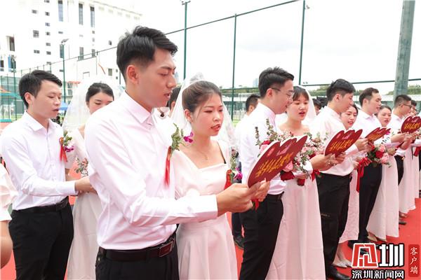 新郎身穿白襯衣,新娘身著潔白婚紗,他們十指緊扣,笑容甜蜜,在眾人的見證下交宣讀誓言、深情擁吻,許下一生愛的承諾。羅湖區(qū)副區(qū)長馮健和羅湖區(qū)民政局局長楊文秀作為特邀頒證師,分別為20對新人頒發(fā)結(jié)婚證書并送上誠摯的祝福,新人們的歡聲笑語充滿了婚姻登記處的每個角落,處處洋溢著幸福與喜悅。通過集體頒證莊嚴(yán)而神圣的儀式感,向新人們強(qiáng)調(diào)法律的嚴(yán)肅性和婚姻的莊嚴(yán)性,讓他們銘記婚姻家庭蘊(yùn)含的責(zé)任與擔(dān)當(dāng),同時倡導(dǎo)廣大市民樹立“重登記、強(qiáng)責(zé)任、崇節(jié)儉”的婚俗新風(fēng)意識,形成婚事新辦、簡辦的文明新風(fēng)尚。