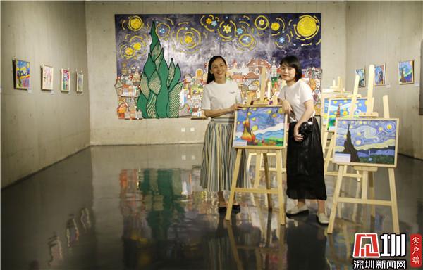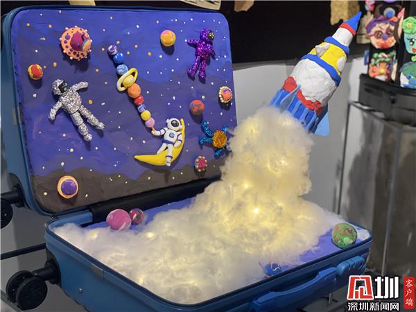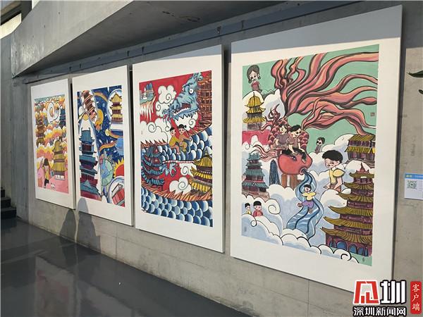 騎著小白兔在天上看四大名樓、把四大名樓帶到宇宙里、在四大名樓上面遇見天空之城……現(xiàn)場,幾幅畫作吸引觀賞者駐留觀看?!皻v代文人墨客用千古名篇頌揚四大名樓,而這個《中國四大名樓》系列作品,孩子們將與深圳共成長的切身感受,與歷史畫卷中的四大名樓發(fā)生靈感碰撞,以簡單的水墨畫表現(xiàn)形式,呈現(xiàn)出不可思議的藝術(shù)效果?!弊髌分笇?dǎo)老師于雪在采訪時介紹說道,這一系列的作品,是三四年級的孩子創(chuàng)作,身高沒有很高,但是作品的畫幅很大,而且用的材質(zhì)是宣紙,比較容易破,因此孩子們在繪畫過程中也學(xué)會了調(diào)整身體的位置和紙張比例,以及更加小心翼翼地保護自己的畫作,這也是他們創(chuàng)作中有趣的過程。