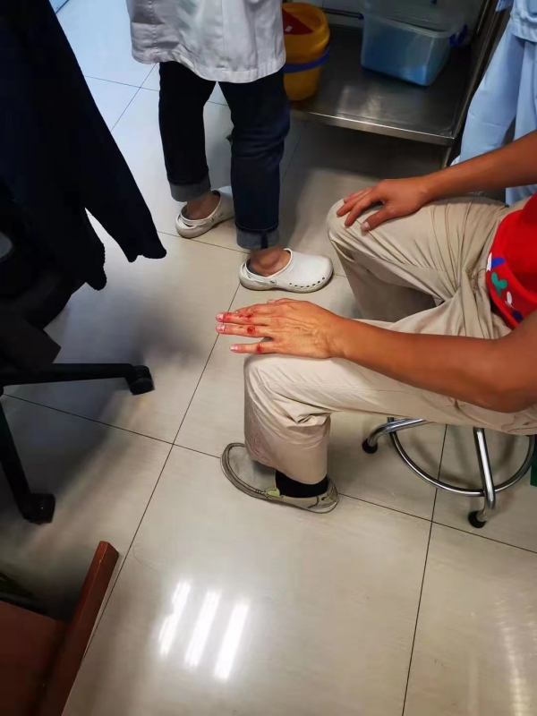 心中著急的梁國輝剛上路不久,突然間精神恍惚,車頭沒把穩(wěn),等反應(yīng)過來已經(jīng)趴在地上了。網(wǎng)格員王勇剛好路過,扶起梁國輝送到社康止血與包扎。社康醫(yī)生一邊處理一邊對他說:“傷口比較深,現(xiàn)在幫你止血,等一下必須去留醫(yī)部急診處理一下,牙齒也缺了兩塊,怎么傷得那么重呀?”“昨天加班熬夜了,沒睡好,給你添麻煩了?!绷簢x不好意思地說道,社康醫(yī)生笑著安撫他:“大家都是兄弟姐妹,我們昨天不是一起在繽紛時代加班驗核酸…”原來社康醫(yī)生正是此前與自己一起在疫情防控工作的小伙伴之一,便安下心來接受治療。