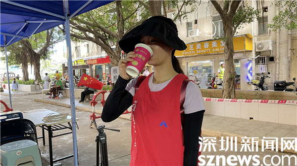 “目前全區(qū)大概有1.1萬名工作人員奮戰(zhàn)在社區(qū)、驛站防疫一線,他們無懼酷暑風雨堅守崗位,用汗水為疫情防控構(gòu)筑堅實堡壘,羅湖區(qū)婦聯(lián)代表羅湖區(qū)社區(qū)小區(qū)組,積極聯(lián)系愛心企業(yè)瀾滄古茶集團,送上一杯陳皮茶,感謝他們的無私奉獻,也希望他們保護好自己?!秉S毓瓊對記者說。