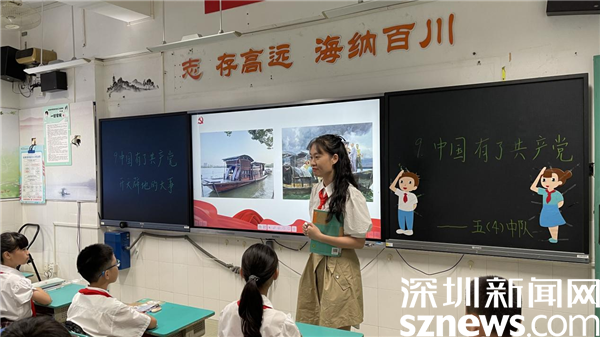 6月16日上午,記者走進深圳市螺嶺外國語實驗學校,教室里的老師正生動地講述中國共產(chǎn)黨的光輝歷程,通過一張張珍貴的歷史圖片、一段段刻骨銘心的歷史故事,引領同學們共同追尋紅色記憶、感懷革命精神。