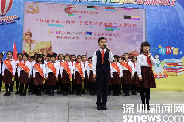 據(jù)了解,深圳市螺嶺外國語實驗學校從2020年10月就持續(xù)開展形式多樣的黨史學習教育進校園,其中包含“大手拉小手、黨史進課堂”黨員教師宣講黨史隊會課、“紅領巾童心向黨,學黨史傳承使命”全體師生升旗課程、“大手拉小手、共學黨隊史”大隊委宣講黨史隊史隊知識等。