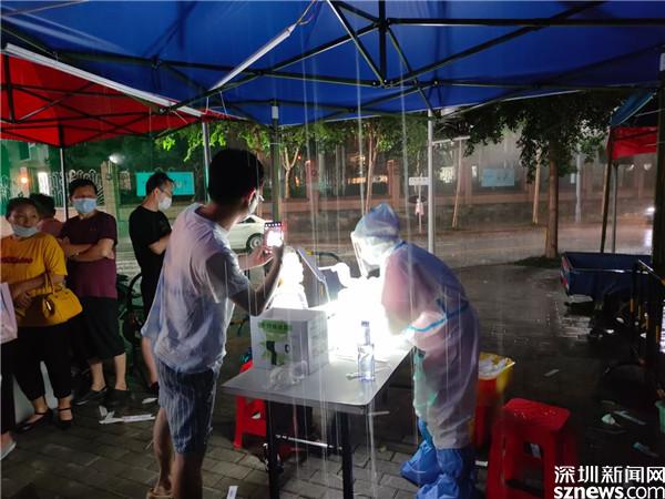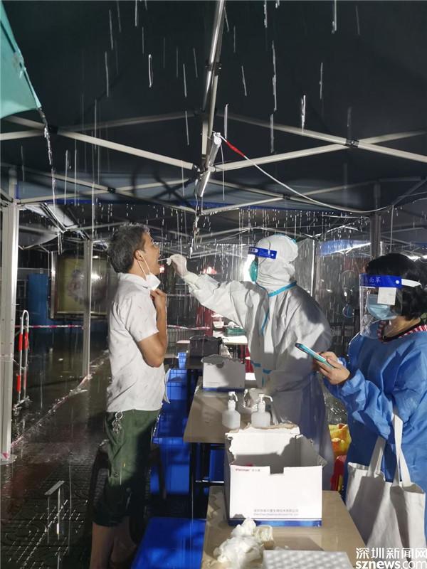 讀特客戶端·深圳新聞網(wǎng)2021年6月21日訊(記者 李慧)6月21日晚及6月22日一早,深圳雷雨交加,深圳市氣象臺2021年06月22日07時(shí)10分在多個(gè)區(qū)域發(fā)布暴雨紅色預(yù)警,羅湖也包括其中。有那么一群人,嚴(yán)陣以待、逆雨迎風(fēng),堅(jiān)守在抗疫一線。記者到各核酸檢測點(diǎn)看到,醫(yī)護(hù)人員和社區(qū)義工們?nèi)匀幻爸L(fēng)雨,堅(jiān)守在核酸采集的崗位上。