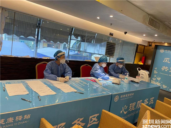 心理健康服務(wù)團(tuán)隊(duì)正在心理服務(wù)區(qū)等待為隔離人員進(jìn)行心理評(píng)估。