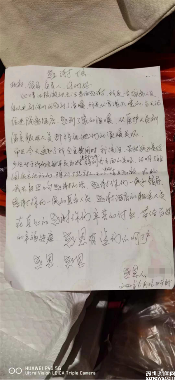 收到了驛站其中一名隔離人員的感謝信。