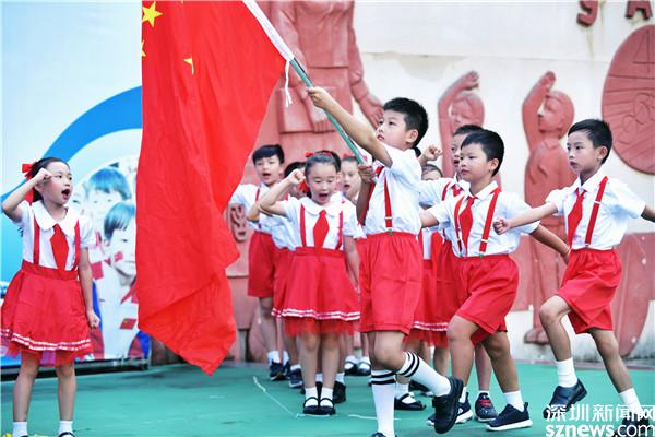 蓮南小學(xué)的開(kāi)學(xué)典禮上,二(8)班少先隊(duì)員在國(guó)旗下,用生動(dòng)活潑的歌舞,表達(dá)對(duì)新學(xué)期的期待,對(duì)黨的熱愛(ài)。