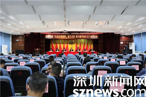 讀特客戶端·深圳新聞網(wǎng)2021年11月19日訊(記者 郭含笑 通訊員 黃貽凱)感恩奮進(jìn)跟黨走,緊鑼密鼓再出發(fā)。羅湖區(qū)第八次黨代會、區(qū)“兩會”的順利閉幕是一個結(jié)束,也是羅湖新征程、新使命、新奮斗的開始。為弘揚(yáng)羅湖光榮傳統(tǒng)、賡續(xù)羅湖血脈傳承,在街道全體黨員干部中形成憋足一口氣趕超奔跑、鉚足一股勁狠抓落實(shí)的風(fēng)氣,把先鋒精神、奮斗文化轉(zhuǎn)化為強(qiáng)大執(zhí)行力、踐行在奮斗新征程,11月19日下午,深圳市羅湖區(qū)東湖街道召開“弘揚(yáng)先鋒精神、奮斗文化 努力提升執(zhí)行力”動員大會。街道黨工委書記程時菊等處級干部,各辦、中心全體在編人員,各社區(qū)黨委書記、副書記、副站長、城管專干共100余人參加會議。