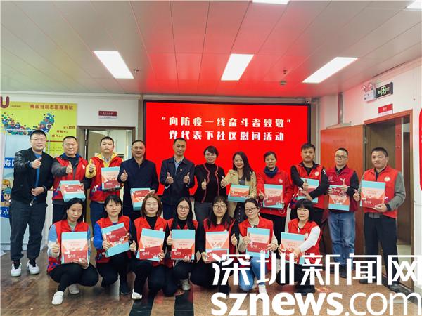 活動開始前,羅湖區(qū)黨代表、清水河街道黨工委副書記、辦事處主任宮雪,深圳市羅湖區(qū)黨代表童根生一行到梅園社區(qū)黨群服務中心慰問了梅園社區(qū)全體一線工作人員,為大家送上貼心防疫關(guān)愛包和暖心慰問信。
