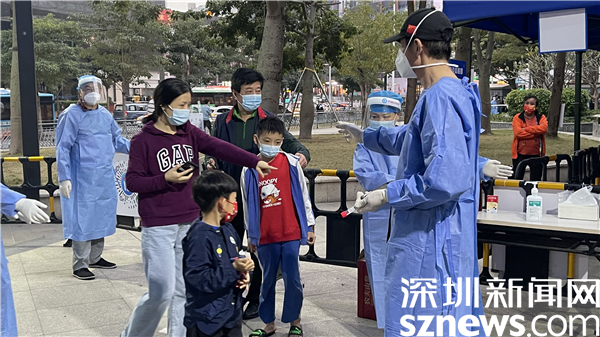 “把嘴張開,放輕松?!贬t(yī)護(hù)人員輕車熟路地進(jìn)行咽拭子采樣,迅速封存標(biāo)本,短短幾秒的過程不僅體現(xiàn)了“深圳速度”,更凸顯了醫(yī)護(hù)人員的耐心與專業(yè)性。不論是老年人還是小朋友,醫(yī)護(hù)人員都通過不同的溝通方式高效完成采樣工作,確保核酸檢測(cè)工作有序進(jìn)行。