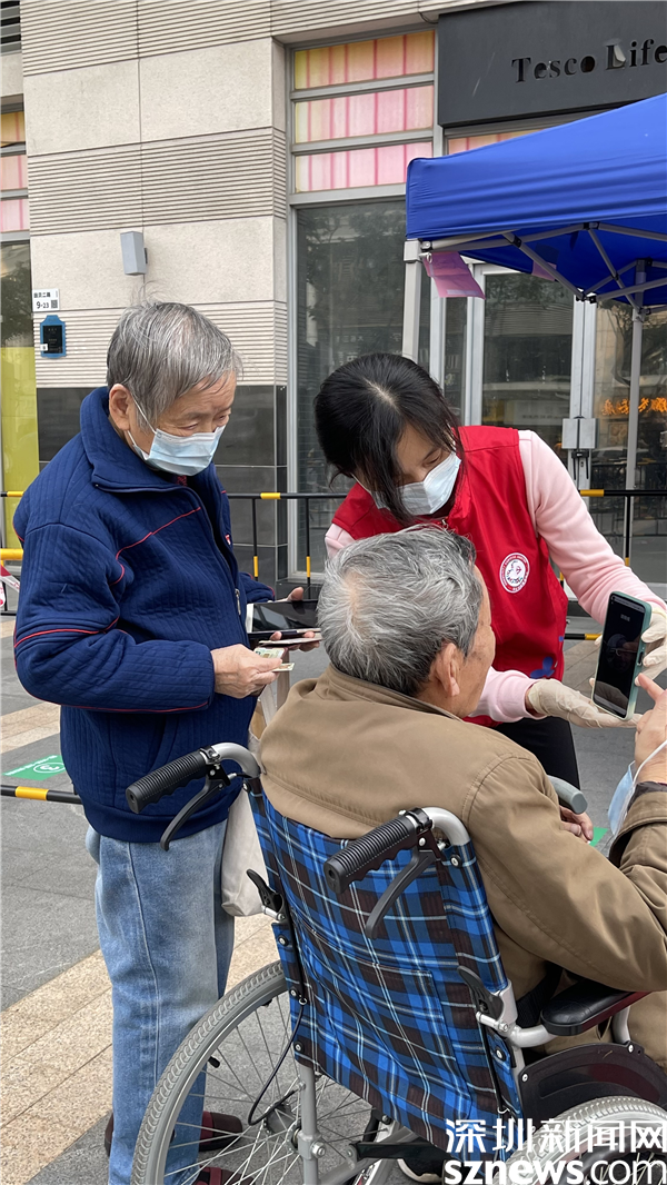 在翠竹街道金翠園核酸檢測(cè)點(diǎn),記者在現(xiàn)場(chǎng)看到核酸檢測(cè)隊(duì)伍共分成兩條隊(duì)伍,居民正按照地面劃好的“一米線”排隊(duì),身穿紅馬甲的社區(qū)工作人員與醫(yī)護(hù)人員正有條不紊地進(jìn)行核酸采樣工作,詢問、登記、采樣......在羅湖的街頭,除了秩序井然的核酸檢測(cè),溫暖的故事也在悄然發(fā)生著。