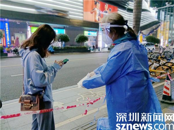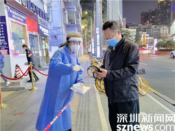 讀特客戶端·深圳新聞網(wǎng)2022年1月10日訊(記者 劉嘉敏 通訊員 楊紀(jì)歐)“來了來了,又來了一個!請打開健康碼,測體溫?!痹诹_湖區(qū)桂園街道老圍社區(qū)禧程酒店臨時檢測點,不時響起這樣的歡呼聲,那喜悅之情溢于言表,這是志愿者周先珍。夜已深,但檢測點依然燈火通明,社區(qū)工作者和志愿者以及醫(yī)務(wù)人員挑燈夜戰(zhàn),周先珍是其中之一。