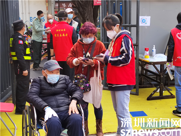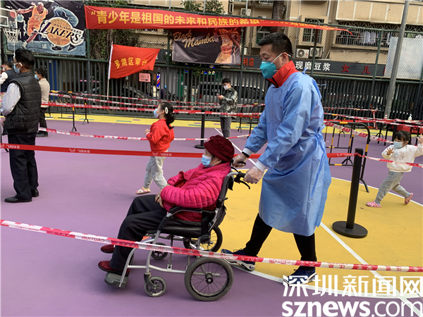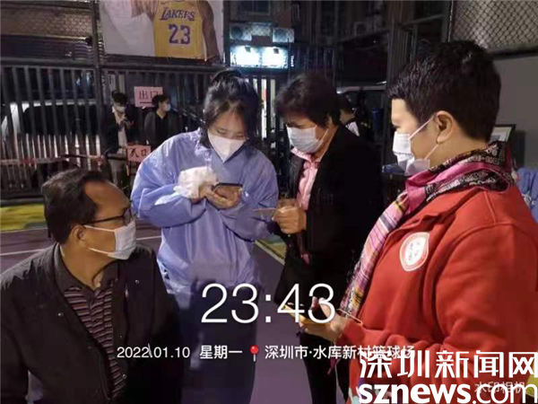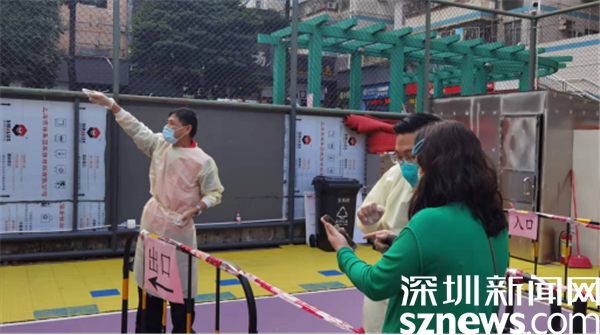 由于樓宇建設(shè)年代久遠(yuǎn),基礎(chǔ)設(shè)施較為落后,核酸檢測點(diǎn)設(shè)在新村社區(qū)僅有的一個(gè)籃球場空地上。羅湖區(qū)審計(jì)局下沉干部與社區(qū)黨委精心謀劃,按照“隔離檢測、分流進(jìn)場、專崗專人”的原則,在長28米、寬15米的小方陣?yán)?,搭起?條核酸檢測通道,按照引導(dǎo)員、計(jì)數(shù)員、掃碼員、講解員等不同職能,重構(gòu)了檢測流程,定人定崗“流水線”工作,迅速提升了檢測效率。
