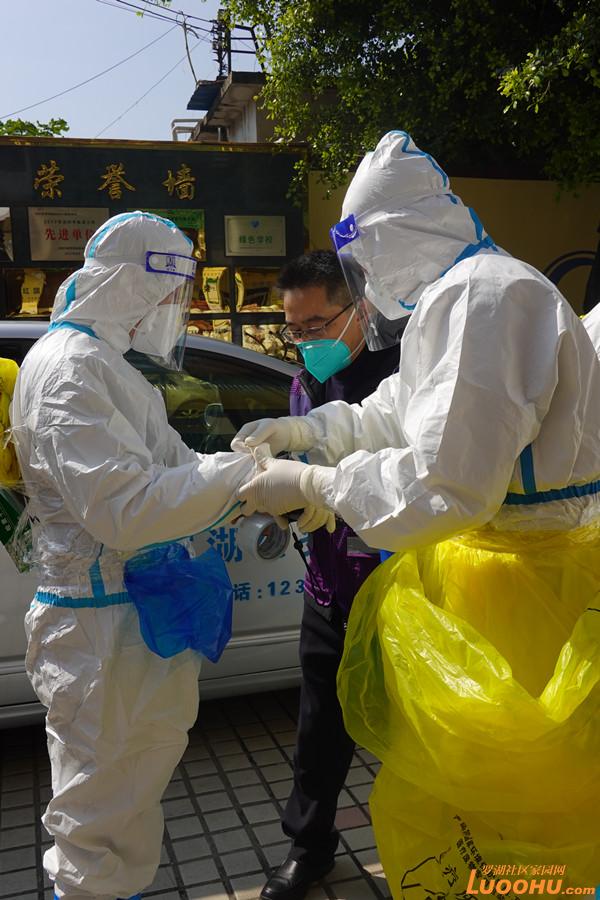 臘八節(jié)剛過,深圳帶著些許涼意,卻也是艷陽高照。“同志們,相互檢查一下手腕腳腕有沒有貼好!穿戴整齊后準(zhǔn)備集結(jié)出發(fā)啦!”在封控區(qū)外圍的醫(yī)護(hù)人員整備區(qū),一群身穿防護(hù)服、全副“武”裝的工作人員整裝待發(fā),兩人一組,目光堅(jiān)定,向著封控區(qū)的入口走去。