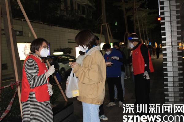 “楊妹,我來了,還帶來了一個(gè)人?!?3日晚,正在羅湖區(qū)桂園街道老圍社區(qū)禧程酒店核酸檢測點(diǎn)忙碌的社工楊女士,接到志愿者溫寶珍的電話。溫寶珍從“0107疫情”開始以來,每天都在核酸檢測點(diǎn)協(xié)助核酸檢測,這晚她把自己的兒媳婦吳永霞也帶來了。“婆婆剛從其他社區(qū)的核酸檢測點(diǎn)做完義工回來,聽說老圍社區(qū)需要人,放下飯碗就來了。婆婆這么大年紀(jì)了還沖在前面,我做兒媳婦的,怎么也要向婆婆學(xué)習(xí)啊?!眳怯老紝ι绻ふf?!皯?yīng)該的應(yīng)該的,疫情當(dāng)前,每個(gè)人都有義務(wù)出來與病毒作戰(zhàn),光是靠社區(qū)工作者不行,他們太累了?!睖貙氄溥呎f邊幫兒媳穿好義工服,把粵核酸的二維碼交給兒媳,并教兒媳如何在手機(jī)上查驗(yàn)。