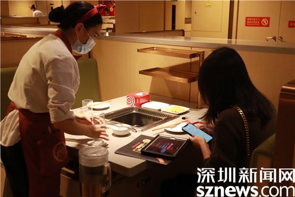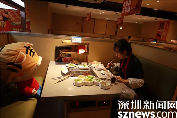 冬季是火鍋消費(fèi)的旺季,在用餐高峰期,位于深圳市羅湖區(qū)這家連鎖火鍋店里,可見門口顯眼處貼著“半份菜 滿份愛”的海報(bào),店內(nèi)還有光盤行動(dòng)等標(biāo)語,還有一名光盤行動(dòng)倡導(dǎo)員在餐廳內(nèi)不時(shí)給消費(fèi)者溫馨提示,倡導(dǎo)顧客適量點(diǎn)餐。