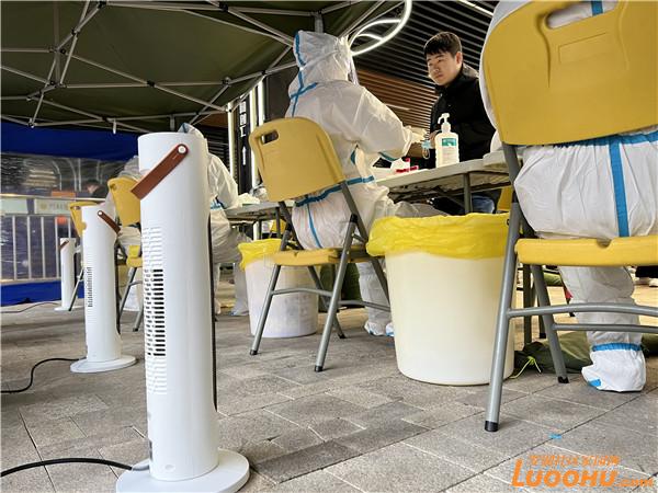 十分鐘后,物資配送車輛來到萬科里核酸檢測(cè)點(diǎn),工作人員將熱乎乎的姜茶送到工作人員手中,并熟練地尋找合適的地方架起暖風(fēng)機(jī)。“從周末的暖寶寶,到今天的暖風(fēng)機(jī),暖心行動(dòng)一再升級(jí),感覺很驚喜?!绷_湖醫(yī)院護(hù)士劉新媚向記者說道,目前疫情防控工作任務(wù)艱巨,檢測(cè)點(diǎn)周末也在連續(xù)運(yùn)轉(zhuǎn),但街道及時(shí)的物資保障,讓所有一線人員都感覺很暖心。